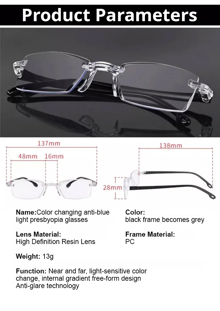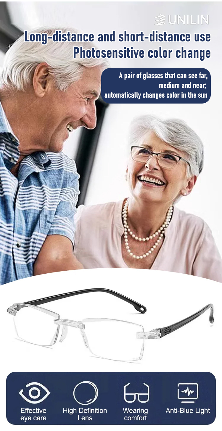 Color-changing anti-blue light presbyopia glasses